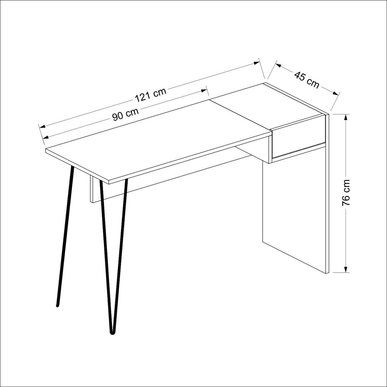 مكتب لون رمادي في خشبي يحتوي علي درج – والقدم معدن